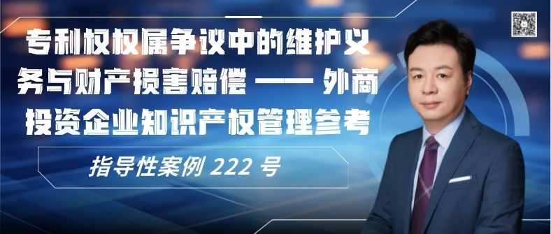 最高人民法院发布的指导性案例 222 号(广州德某水产设备科技有限公司诉广州宇某水产科技有限公司、南某水产研究所财产损害赔偿纠纷案),聚焦专利权权属争议期间的权利维护义务及相应财产损害赔偿问题,对企业尤其是涉及技术研发、专利管理的外商投资企业具有重要参考价值。该案例明确了登记专利权人的善意管理责任边界,厘清了此类纠纷的法律适用逻辑,可为企业在专利权属争议处理、权利存续维护等环节提供法律指引。