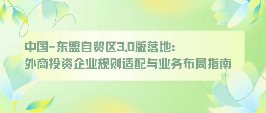 中国-东盟自贸区3.0版落地:外商投资企业规则适配与业务布局指南