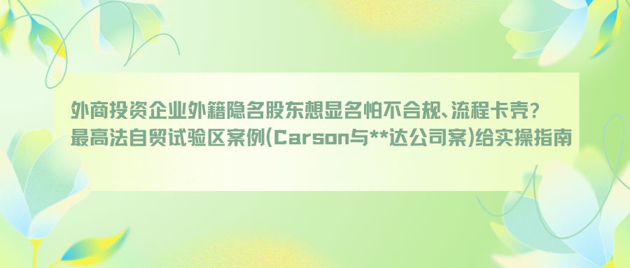 外商投资企业外籍隐名股东想显名怕不合规、流程卡壳?最高法自贸试验区案例(Ca......