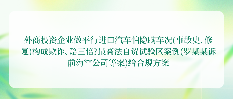 #外商投资企业 #平行进口汽车 #汽车欺诈 #三倍赔偿 #最高法案例 #自贸试验区 #汽车合规 #车况核查 #信息披露 #合同设计 #纠纷应对 #事故车维权 #汽车进口合规