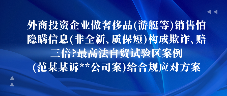 #自贸试验区 #外商投资企业 #奢侈品销售合规 #消费欺诈 #三倍赔偿 #游艇销售 #信息披露 #最高法典型案例 #高端消费品销售 #合规方案